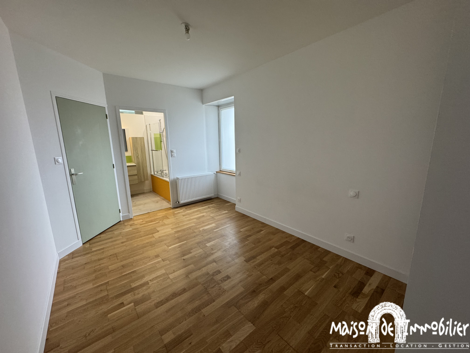 Sur plancher, murs peints, avec placards